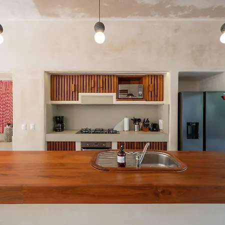 Villa Hogar Tulum Close To Beach - Brand New offers a fully equipped kitchen featuring a microwave, a toaster, and a stove top. - ❓